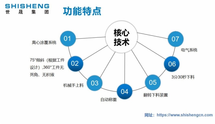 世晟集團800系列全自動達克羅涂覆生產(chǎn)線的設(shè)計和制造,是基于使用各種有鉻、無鉻達克羅涂料(水劑和油劑)對金屬工件進行表面涂覆工作,也可用于其它非鋅鋁涂料的零件表面涂覆、著色或封閉加工。全自動浸甩一體機由浸槽(SUS304)、甩干機構(gòu)(可傾斜)、槽體、槽蓋、涂液攪拌裝置、涂液回收裝置、涂液溫度調(diào)節(jié)系統(tǒng)、工件回轉(zhuǎn)輸送系統(tǒng)(升降采用氣缸)、涂液攪拌控制系統(tǒng)和料筐、小車翻轉(zhuǎn)上料裝置、伸縮式網(wǎng)帶輸送機、稱重系統(tǒng)。
